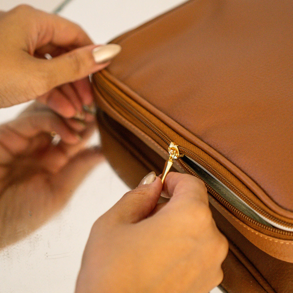 ATENÇÃO: Não utilizar produtos químicos no material sintético, em cima da personalização ou nas ferragens, isso poderá danificar o produto.