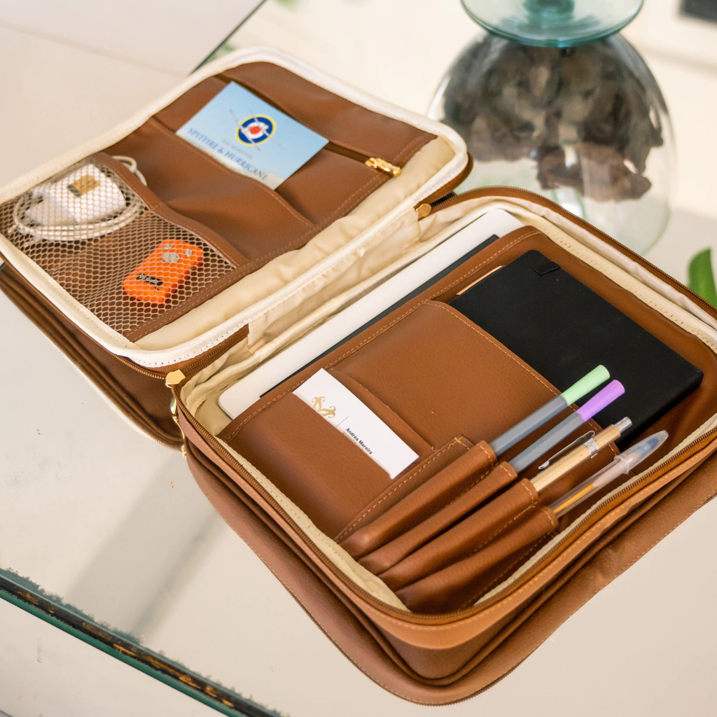 Com um design compacto e multifuncional, o Estojo Maxi é essencial para manter seus itens sempre à mão e organizados. Nele, você pode guardar canetas, lápis, cartões e até mesmo sua agenda. Desfrute de toda a organização e estilo com o Estojo Maxi.