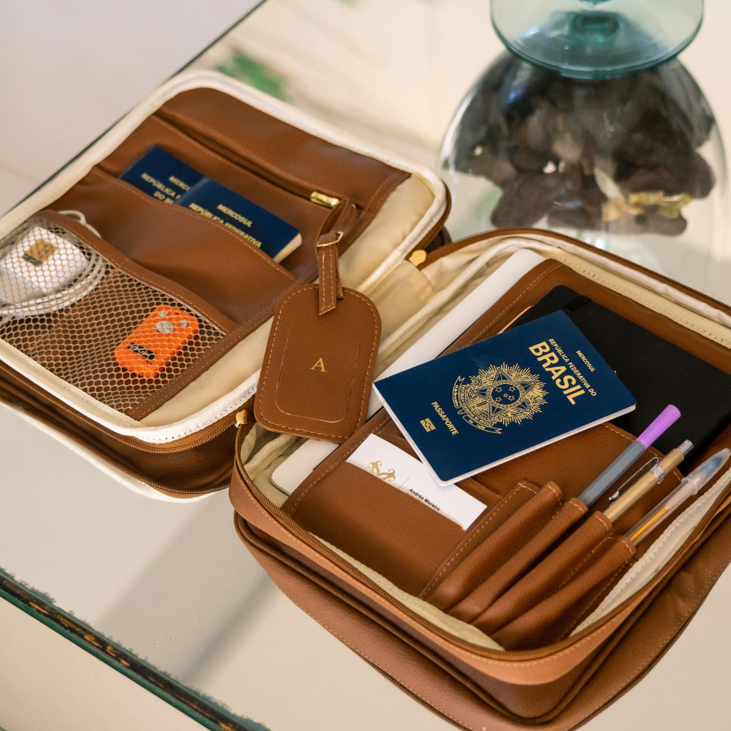 Viaje com tranquilidade e organização com o Kit 2 peças Estojo Organizador Maxi Caramelo & Tag de Mala Caramelo. A Tag de Mala garante que suas bagagens sejam facilmente identificadas, unindo funcionalidade e estilo. Já o Estojo Maxi traz versatilidade para o seu dia a dia, mantendo seus itens essenciais sempre ao alcance, com design compacto e multifuncional.