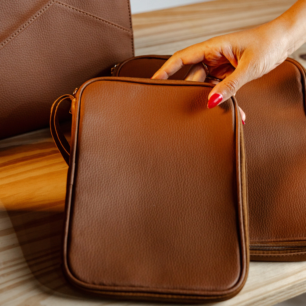 ATENÇÃO: Não utilizar produtos químicos no material sintético, em cima da personalização ou nas ferragens, isso poderá danificar o produto.