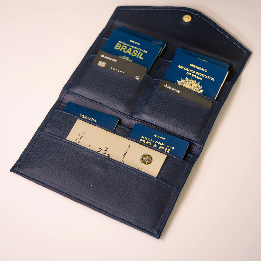 O Porta Passaporte Family foi projetado para atender às necessidades de toda a sua família durante a viagem. Com espaço suficiente para acomodar até 6 passaportes, ele é perfeito para garantir que todos os documentos de viagem estejam sempre à mão de maneira prática.